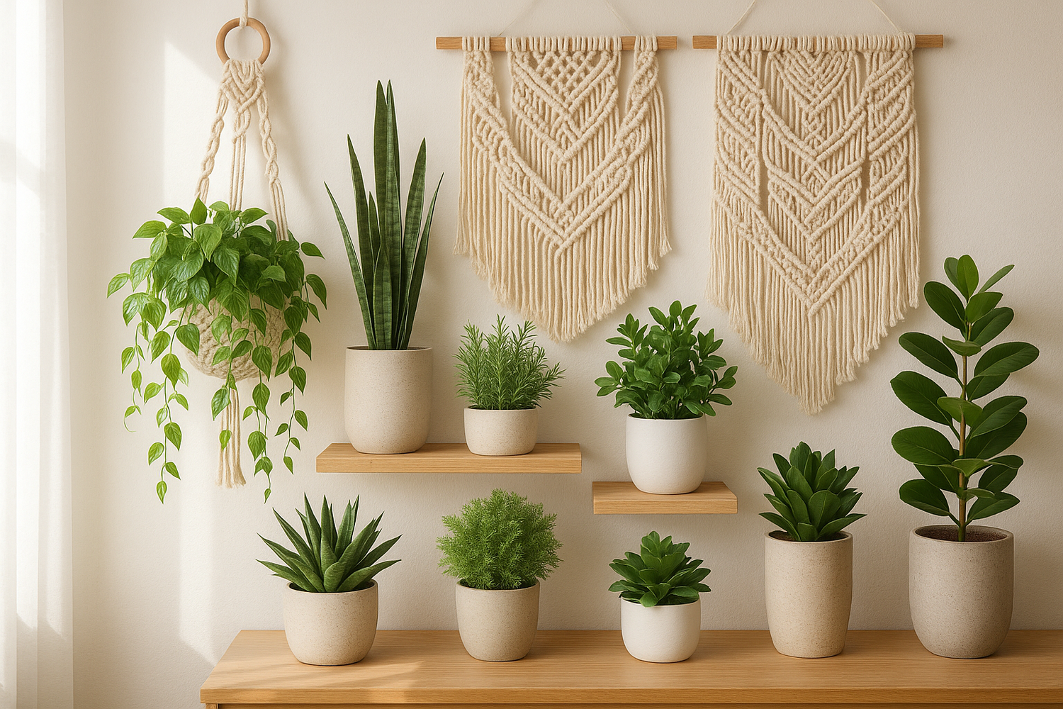 Sublimez votre intérieur avec nos plantes artificielles, macramés et paniers en osier...