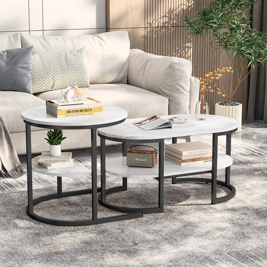 Tables basses 2 en 1 modernes avec rangement - Style marbre