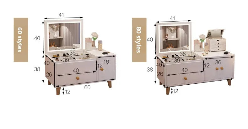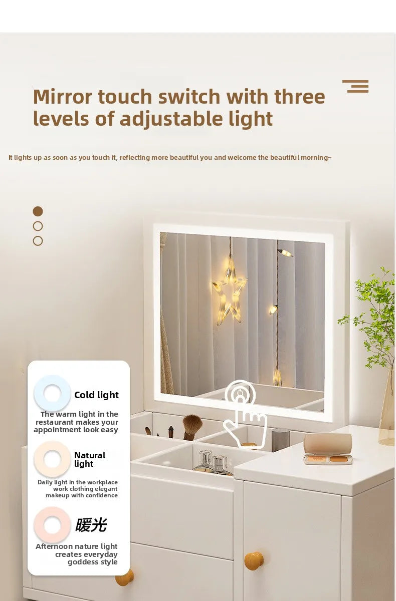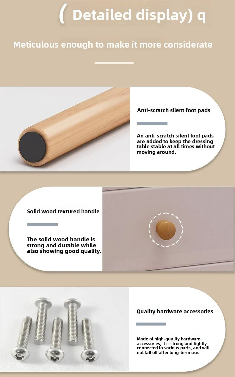La commode est livrée avec un miroir, ajoutant une fonctionnalité supplémentaire à votre espace. Notez que la chaise de maquillage n'est pas incluse.