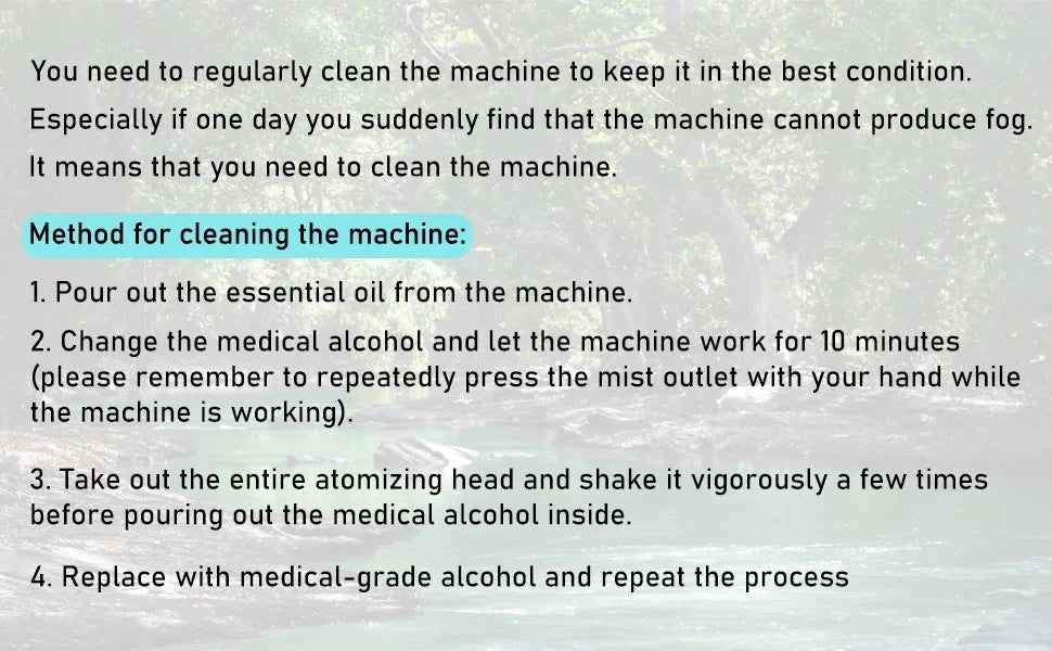 Pour garantir un fonctionnement optimal, il est essentiel de nettoyer régulièrement votre diffuseur. Les huiles essentielles peuvent s'accumuler à l'intérieur et obstruer le diffuseur. Si vous ne percevez plus de parfum après un certain temps, il est peut-être temps de procéder à un nettoyage.