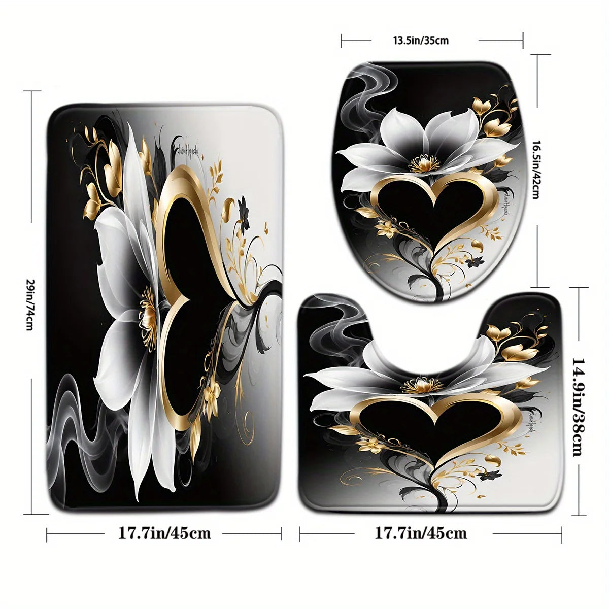 Tapis de bain élégant en cœur avec housse et antidérapant