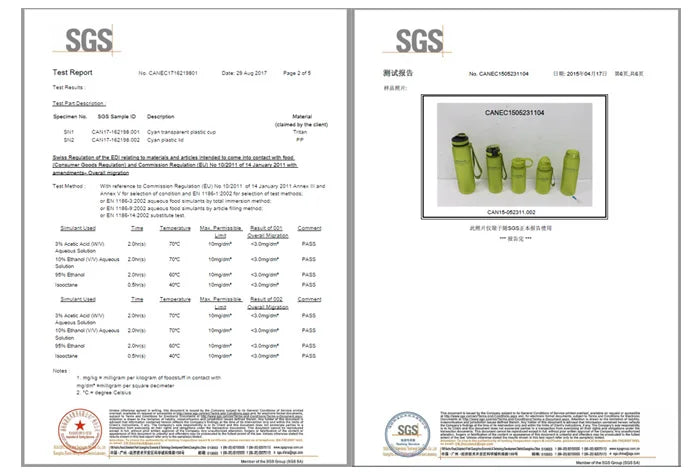 Cette bouteille est certifiée par des organismes reconnus tels que Lfgb, CIQ, CE/UE et SGS, vous garantissant un produit de qualité, sans risques pour votre santé.