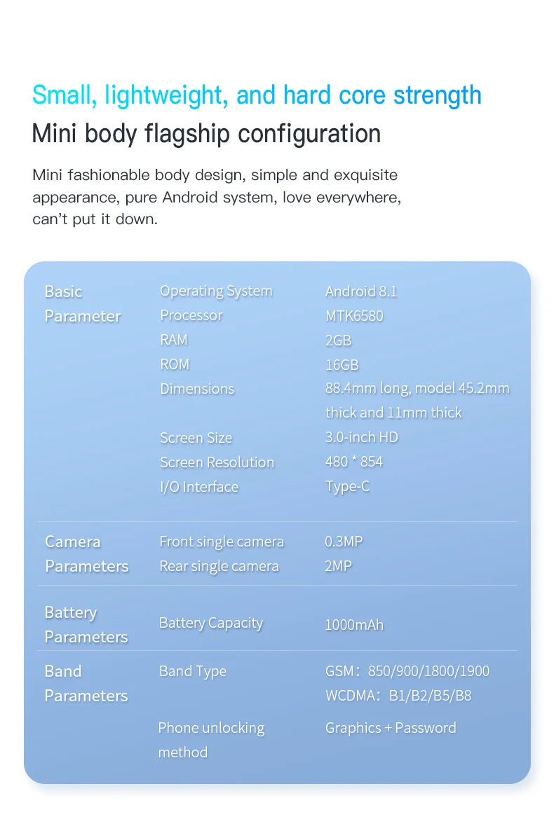 Découvrez le SERVO 15SE, un mini smartphone compact, idéal pour ceux qui recherchent un appareil léger et fonctionnel. Avec son design élégant et sa taille de 3 pouces, il se glisse facilement dans votre poche tout en offrant des fonctionnalités essentielles.